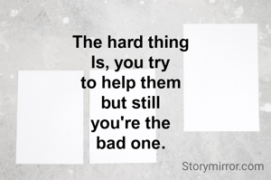 The hard thing Is, you try to help them but still you're the bad one.