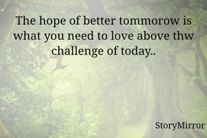 The hope of better tommorow is what you need to love above thw challenge of today..