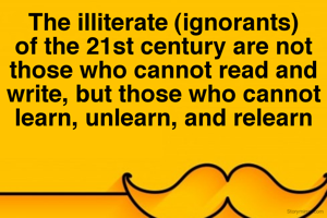 The illiterate (ignorants) of the 21st century are not those who cannot read and write, but those who cannot learn, unlearn, and relearn