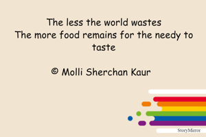 The less the world wastes The more food remains for the needy to taste © Molli Sherchan Kaur