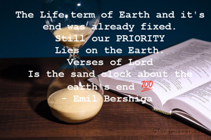 The Life term of Earth and it's end was already fixed. Still our PRIORITY Lies on the Earth. Verses of Lord Is the sand clock about the earth's end 💯 - Emil Bershiga