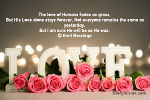 But His Love alone stays forever. Not everyone remains the same as yesterday.
