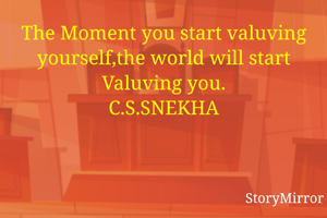 The Moment you start valuving yourself,the world will start Valuving you. C.S.SNEKHA