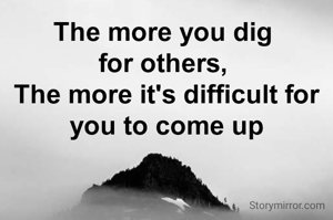 The more you dig for others, The more it's difficult for you to come up
