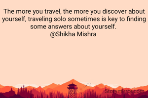 The more you travel, the more you discover about yourself, traveling solo sometimes is key to finding some answers about yourself.
