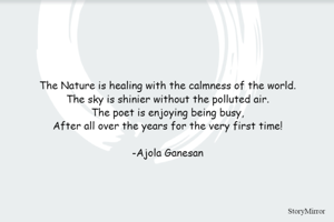 The Nature is healing with the calmness of the world. The sky is shinier without the polluted air. The poet is enjoying being busy, After all over the years for the very first time! -Ajola Ganesan