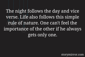 The night follows the day and vice verse. Life also follows this simple rule of nature. One can't feel the importance of the other if he always gets only one.