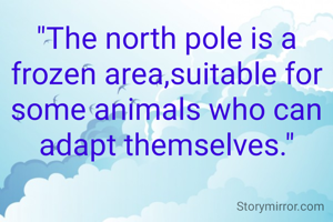 "The north pole is a frozen area,suitable for some animals who can adapt themselves."