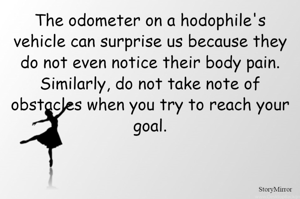 The odometer on a hodophile's vehicle can surprise us because they do not even notice their body pain. Similarly, do not take note of obstacles when you try to reach your goal.