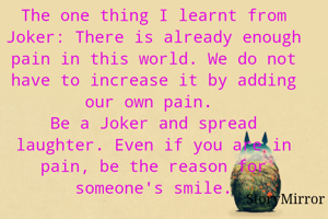 The one thing I learnt from Joker: There is already enough pain in this world. We do not have to increase it by adding our own pain. Be a Joker and spread laughter. Even if you are in pain, be the reason for someone's smile.