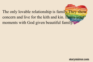The only lovable relationship is family.They show concern and live for the kith and kin. Enjoy your moments with God given beautiful family.
