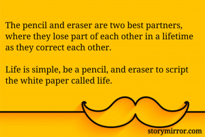 The pencil and eraser are two best partners, where they lose part of each other in a lifetime as they correct each other. Life is simple, be a pencil, and eraser to script the white paper called life.