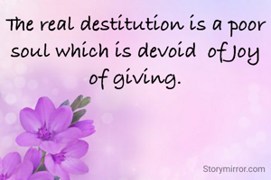 The real destitution is a poor soul which is devoid of Joy of giving.