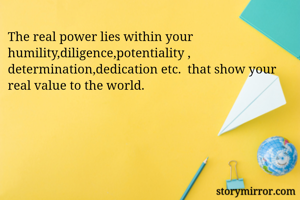 The real power lies within your humility,diligence,potentiality , determination,dedication etc. that show your real value to the world.