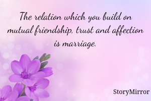 The relation which you build on mutual friendship, trust and affection is marriage.