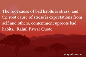 The root cause of bad habits is stress, and the root cause of stress is expectations from self and others, contentment uproots bad habits...Rahul Pawar Quote