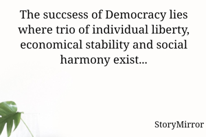 The succsess of Democracy lies where trio of individual liberty, economical stability and social harmony exist...