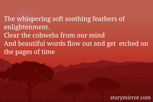 The whispering soft soothing feathers of enlightenment. Clear the cobwebs from our mind And beautiful words flow out and get etched on the pages of time