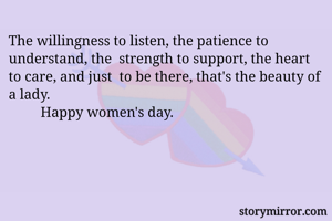 The willingness to listen, the patience to understand, the strength to support, the heart to care, and just to be there, that's the beauty of a lady. Happy women's day.