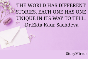 THE WORLD HAS DIFFERENT STORIES. EACH ONE HAS ONE UNIQUE IN ITS WAY TO TELL. -Dr.Ekta Kaur Sachdeva