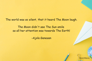 The world was so silent, that it heard The Moon laugh. The Moon didn't see The Sun smile as all her attention was towards The Earth! -Ajola Ganesan
