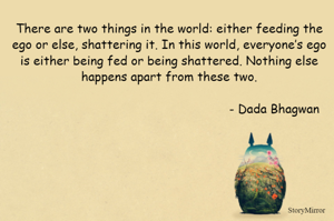 There are two things in the world: either feeding the ego or else, shattering it. In this world, everyone’s ego is either being fed or being shattered. Nothing else happens apart from these two. - Dada Bhagwan