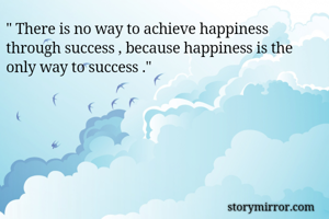 " There is no way to achieve happiness through success , because happiness is the only way to success ."