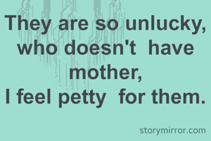 They are so unlucky, who doesn't have mother, I feel petty for them.