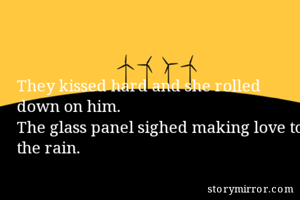 The glass panel sighed making love to the rain.