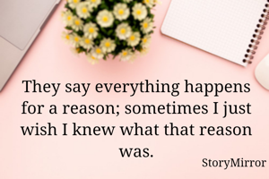 They say everything happens for a reason; sometimes I just wish I knew what that reason was.