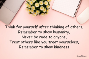 Think for yourself after thinking of others, Remember to show humanity, Never be rude to anyone, Treat others like you treat yourselves, Remember to show kindness