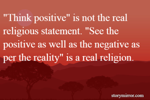 "Think positive" is not the real religious statement. "See the positive as well as the negative as per the reality" is a real religion.