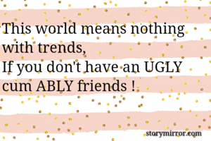 This world means nothing with trends, If you don't have an UGLY cum ABLY friends !