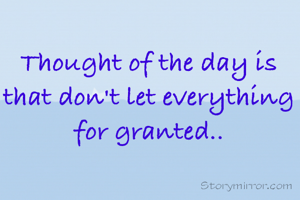 Thought of the day is that don't let everything for granted..