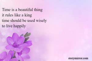 Time is a beautiful thing it rules like a king time should be used wisely to live happily