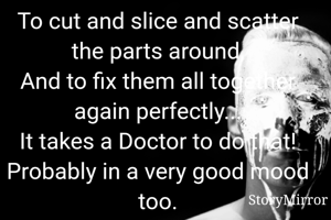 To cut and slice and scatter the parts around, And to fix them all together again perfectly... It takes a Doctor to do that! Probably in a very good mood too. Otherwise...