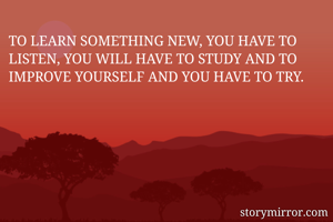TO LEARN SOMETHING NEW, YOU HAVE TO LISTEN, YOU WILL HAVE TO STUDY AND TO IMPROVE YOURSELF AND YOU HAVE TO TRY.