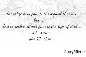 To realize own pain is the sign of that u r living.....