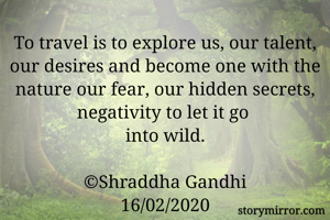 To travel is to explore us, our talent, our desires and become one with the nature our fear, our hidden secrets, negativity to let it go