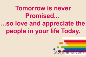 Tomorrow is never Promised... ...so love and appreciate the people in your life Today.