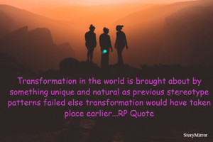 Transformation in the world is brought about by something unique and natural as previous stereotype patterns failed else transformation would have taken place earlier...RP Quote