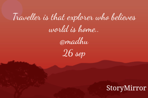 Traveller is that explorer who believes world is home.. @madhu 26 sep