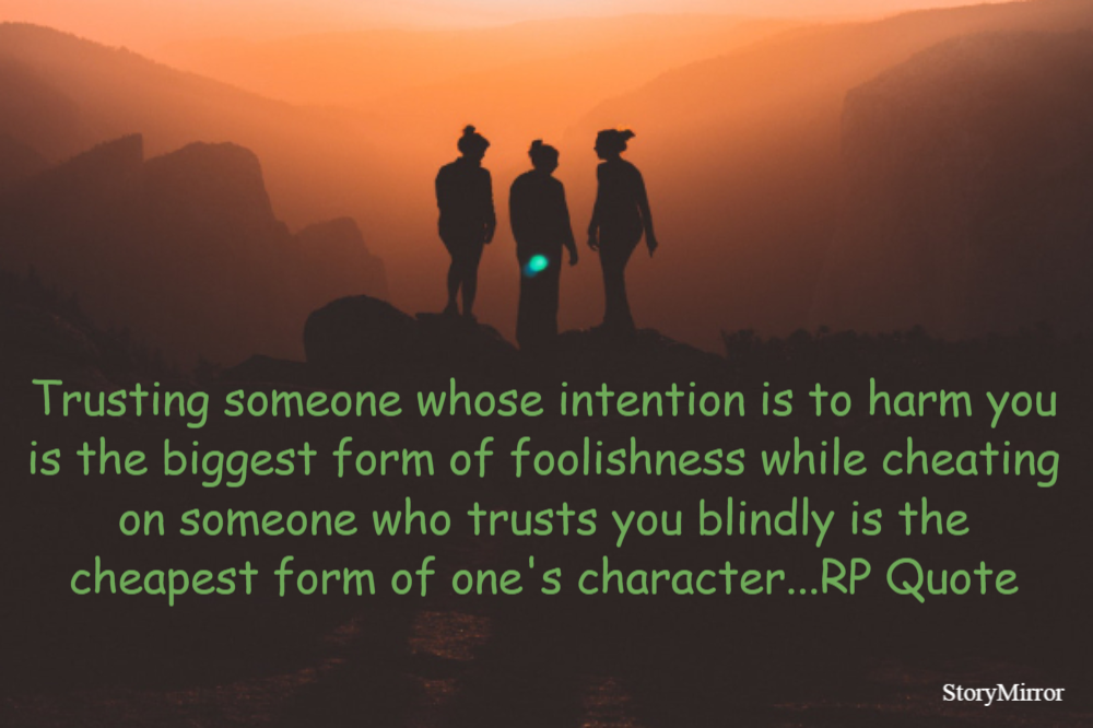 Trusting someone whose intention is to harm you is the biggest form of foolishness while cheating on someone who trusts you blindly is the cheapest form of one's character...RP Quote
