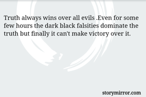 Truth always wins over all evils .Even for some few hours the dark black falsities dominate the truth but finally it can't make victory over it.