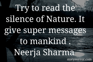 Try to read the silence of Nature. It give super messages to mankind . Neerja Sharma