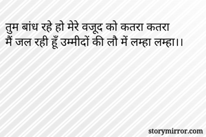 तुम बांध रहे हो मेरे वजूद को कतरा कतरा मैं जल रही हूँ उम्मीदों की लौ में लम्हा लम्हा।।