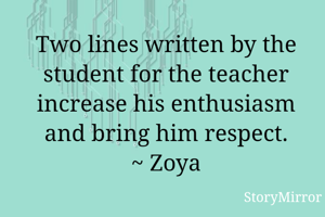 Two lines written by the student for the teacher increase his enthusiasm and bring him respect. ~ Zoya