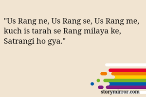 "Us Rang ne, Us Rang se, Us Rang me, kuch is tarah se Rang milaya ke, Satrangi ho gya."