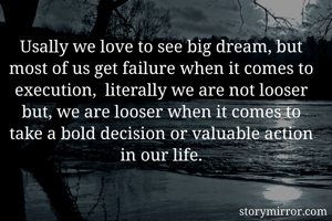 Usally we love to see big dream, but most of us get failure when it comes to execution, literally we are not looser but, we are looser when it comes to take a bold decision or valuable action in our life.