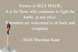 Victory is SELF MADE; It is for those who continues to fight the battle at any price Retreaters are welcomed to sit back and complain - Molli Sherchan Kaur